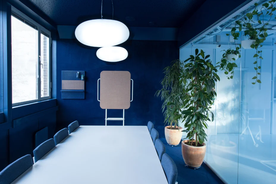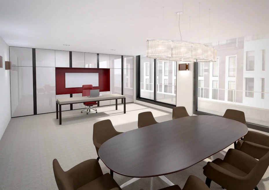 Какой цвет лучше для переговорной? Синие и сине-зелёные оттенки — они снижают напряжение и помогают вести конструктивный разговор. Красный в переговорной уместен только как акцент и только в тех случаях, когда нужно «разогнать» дискуссию.