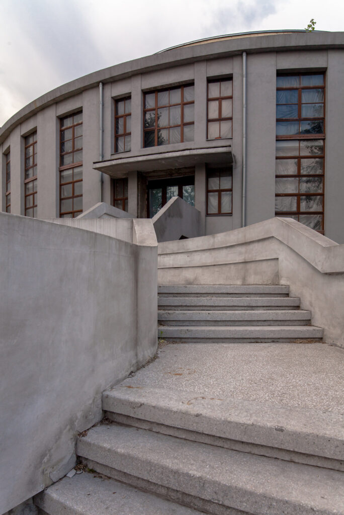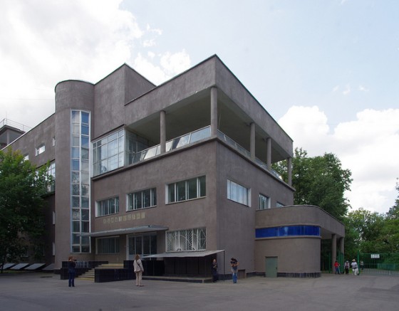 Но строил клубы далеко не один Мельников. Самый большой и весьма интересный в архитектурном смысле клуб создан братьями Весниными. Это ДК Пролетарского района, он же – ДК ЗиЛ (проектировался в 1930 году, строился с 1931 по 1937 год, но полностью проект так и не был воплощён). Здание с большим зрительным залом построено не было, хотя и малый зал был не так уж мал – 1 200 мест. Принципы конструктивизма в этом сооружении демонстрируются просто как на параде: тут и использование столбов-опор, и широкие площади остекления и ленты рядов окон, и свобода внутренней планировки, и плоская террасообразная крыша. В отличие от большинства объектов конструктивизма, сегодня здание ДК ЗиЛ находится в достаточно хорошем состоянии.